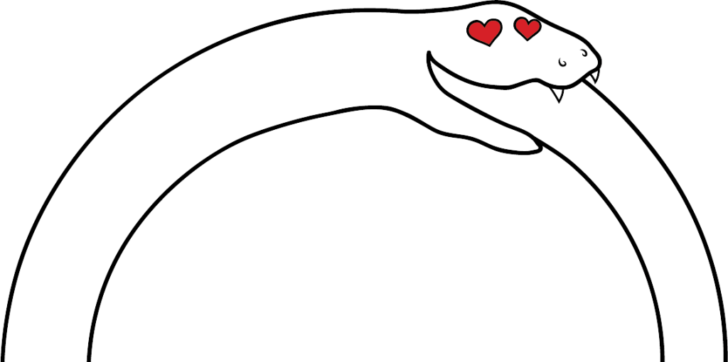 An ouroboros is an ancient symbol of a snake eating its own tail, which represents an unending cycle of destruction and subsequent renewal. Kinda weird. Nonsensical. But always oddly hopeful and ready to begin again. My dating life in a nutshell!
